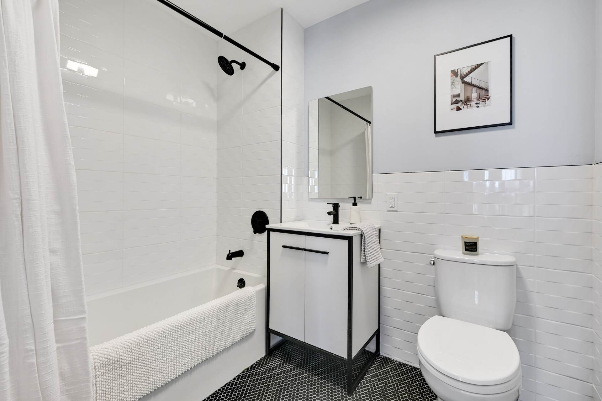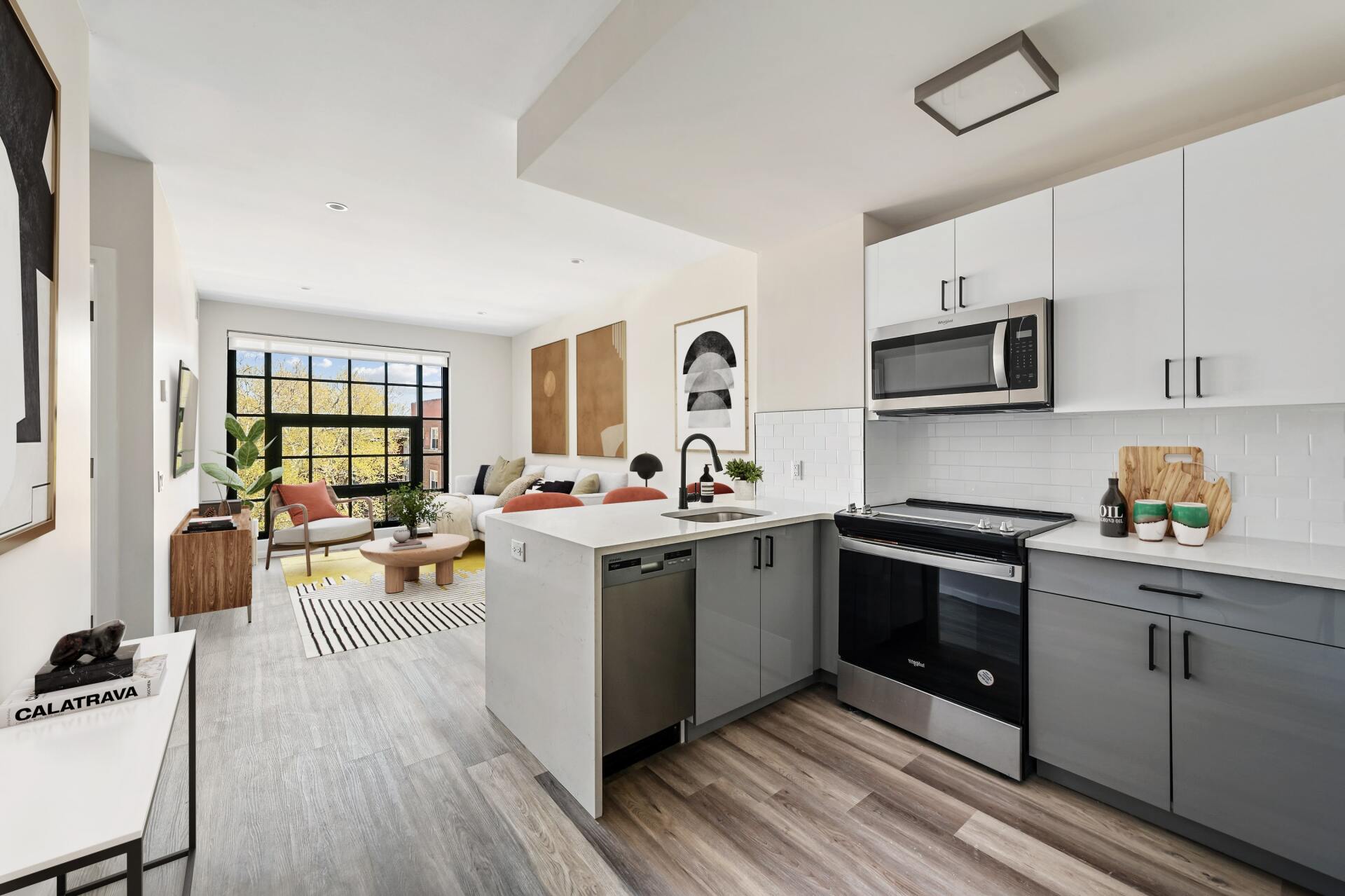 Upon entering these spacious layouts, residents are greeted by expansive windows allowing plenty of natural light flooding the main living areas. Residences boast carefully selected high-end finishes in all brand new kitchens and bathrooms. Kitchens feature white and grey cabinets, Caesarstone countertops and matte black fixtures with a new appliance suite including dishwashers and in residence washer and dryers.